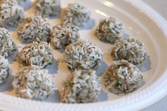 6. Arrange coated balls in steamer basket and steam in a preheated steamer for 10 to 12 minutes, until cooked through.